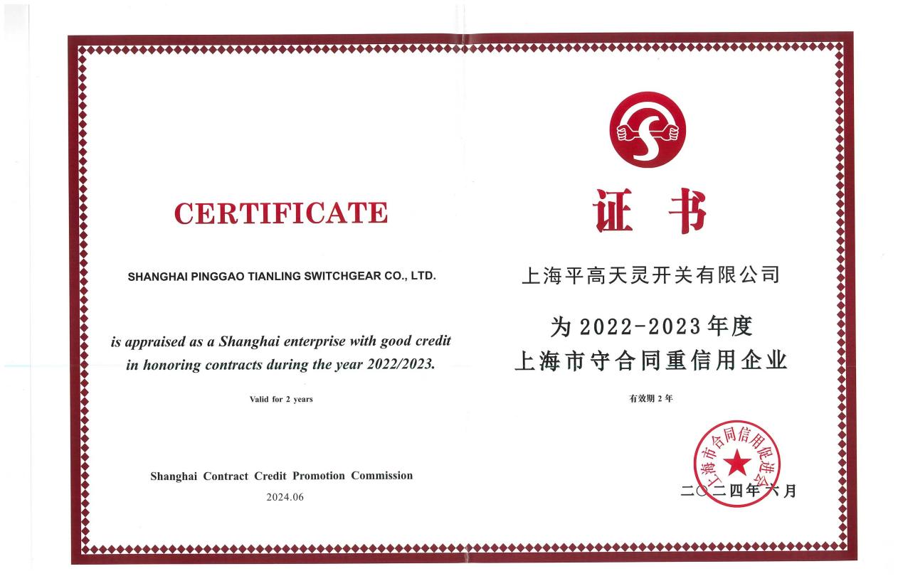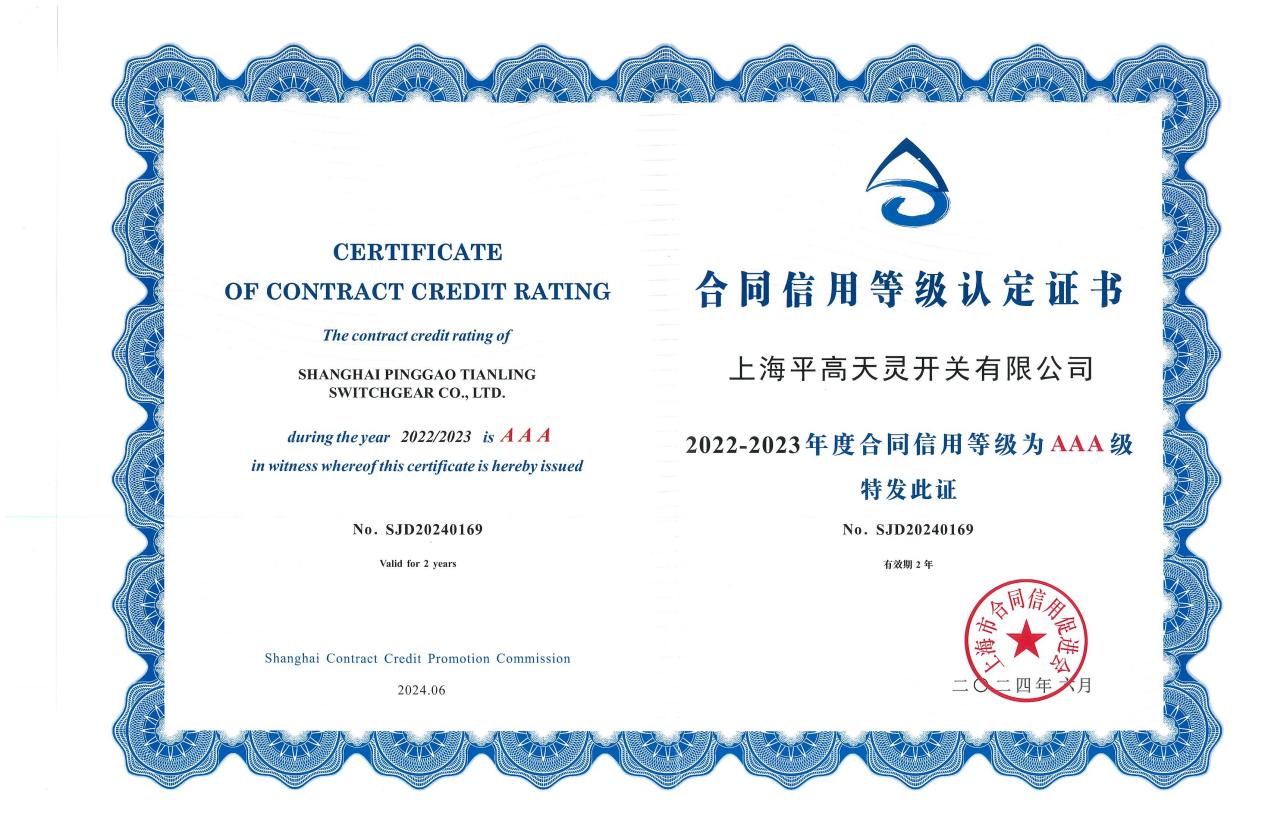 7月23日,从best365足球彩票官网所属上海平高天灵开关有限公司(以下简称“上海平高”)传来喜讯,上海市合同信用促进会公布了2022-2023年度上海市守合同重信用评定的结果,上海平高获得守合同重信用企业和合同信用AAA级企业证书,这是上海平高连续5届荣登榜单。