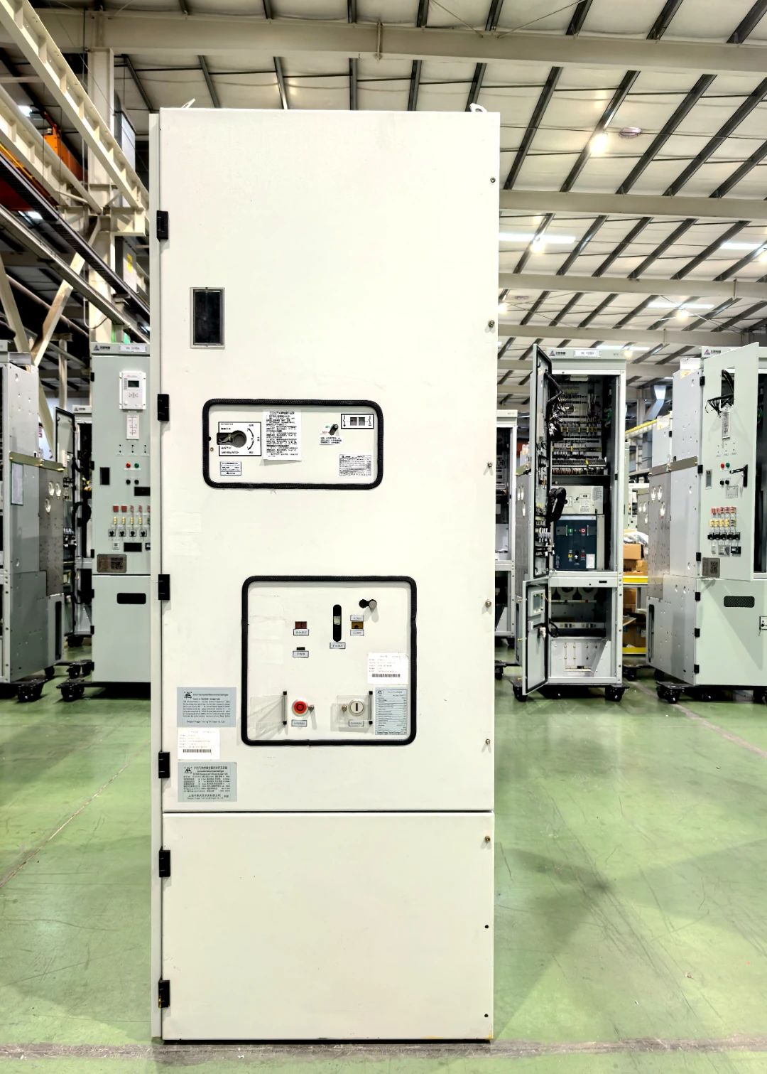 “N2S-40.5(Z)/T3150-31.5户内气体绝缘金属封闭开关设备”通过电场优化和散热技术的应用,设计开发了散热型固封极柱、小型化分体式内锥套管、补偿型大电流绝缘母线插拔连接结构、多层花瓣式母线和半导体智能控温铝盖板、可调支撑的三工位开关等核心元件,研制成功了最低功能压力低至零表压(20℃)的气体绝缘开关柜。产品性能参数符合GB3906-2020及DL404-2018标准要求,在零表压下通过了1.1倍额定电流温升试验,在1.1倍额定电压下整机局放小于10pC,具备高可靠、免维护、小型化显著优势,高强度箱体结构满足4000米海拔要求,可适配各类严苛应用场景。产品通过全套型式试验验证,综合性能达到国际领先水平。